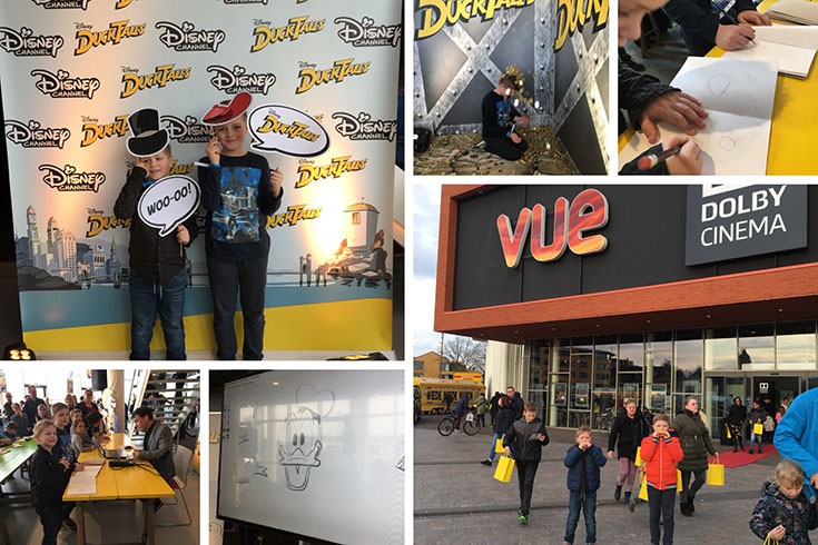 Het Ducktales event was in bioscoop Vue in Hilversum en we werden enthousiast ontvangen. Er werd natuurlijk een leuke foto gemaakt en je kon zwemmen in het geld! Nu deed Alec dit ook al toen hij een baby was hihi, maar het is natuurlijk altijd leuk. Ook konden de kinderen een workshop volgen van een echte tekenaar van de Donald Duck… en dat vonden ze zo gaaf! Ik denk dat de tekenaar zich ook wel echt een BN’er voelden, want de kinderen stelden allemaal vragen en volgens mij zag ik hem zelfs handtekeningen uitdelen. Mijn jongens waren ook flink onder de indruk.