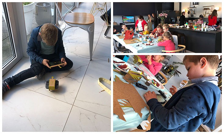 In de keuken werd geknutseld aan een ander spel voor de Switch; de Nintendo Labo. Met het voertuigenpakket om precies te zijn; dit is alweer het derde spel van Labo. Met dit pakket bouw je de eigen onderdelen waarmee je weer kunt spelen. In dit pakket kun je een auto besturen, vliegen in een vliegtuig en onderzeeër besturen en meer. De instructie voor het maken van bijvoorbeeld de onderzeeër vind je in de Switch; hij vertelt je stap voor stap hoe je het bouwpakket in elkaar kunt zetten. Daarna kun je het nog versieren; en dat vond hij ook heerlijk om te doen. Daarna sluit je de Joy-con (controllers) aan op jouw bouwwerk; en kun je gamen! Echt, de techniek staat voor niets!